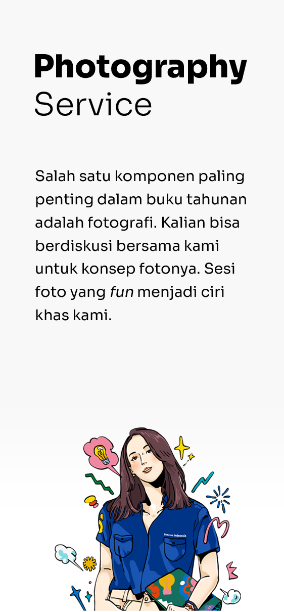 Kami bisa menjangkau dan melayani pembuatan Buku Tahunan di seluruh Indonesia, sebagai partner yang terpercaya membuat karya yang kalian inginkan.